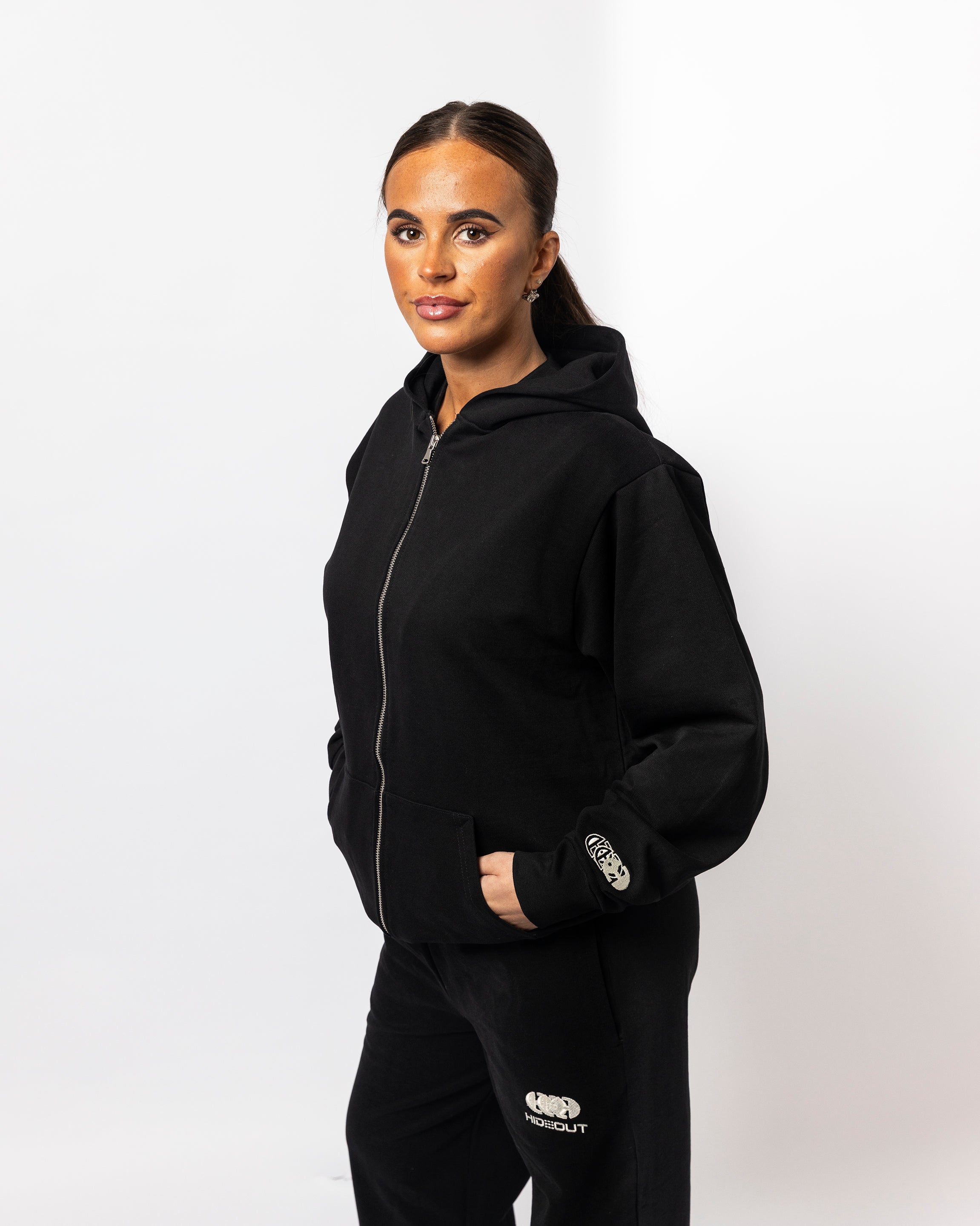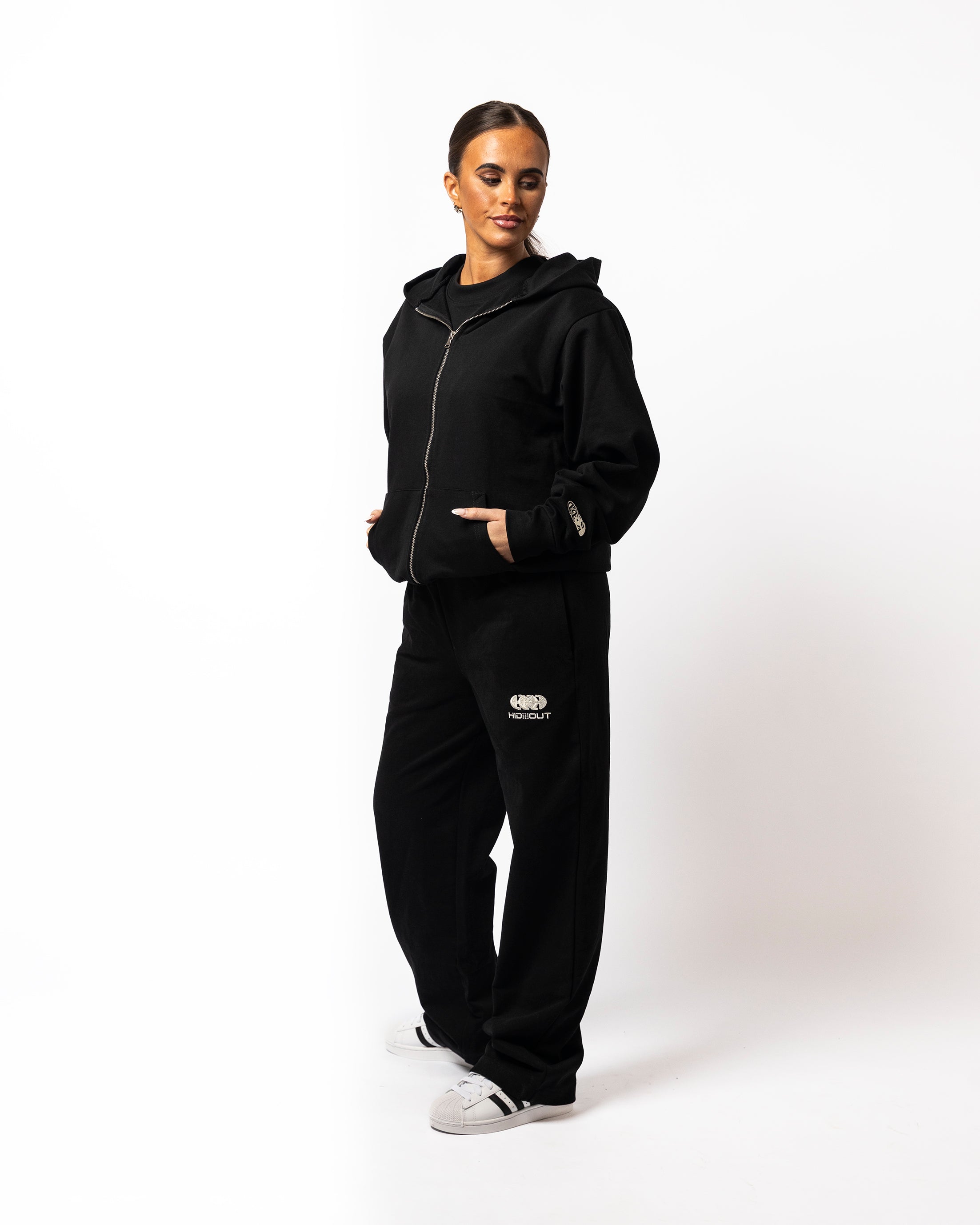 Heavy-weight 100% loopback cotton construction delivers premium comfort and durability for everyday wear. This Revolution zip hoodie features a luxury streetwear aesthetic in the New Black colour way, paired perfectly with straight leg jog pants for a cohesive look. Pre-shrunk fabric ensures your fit stays true wash after wash. Ideal for layering or standalone wear, this piece combines quality craftsmanship with contemporary style.