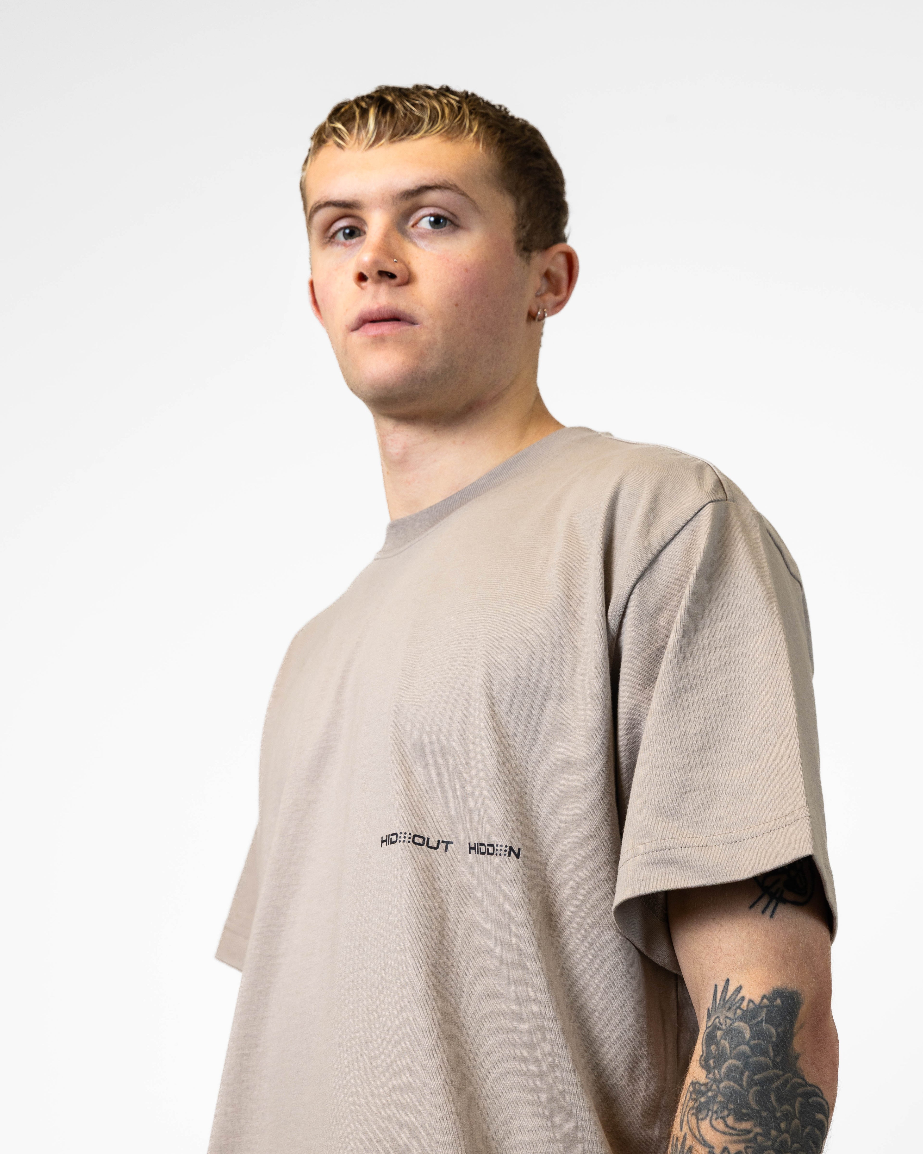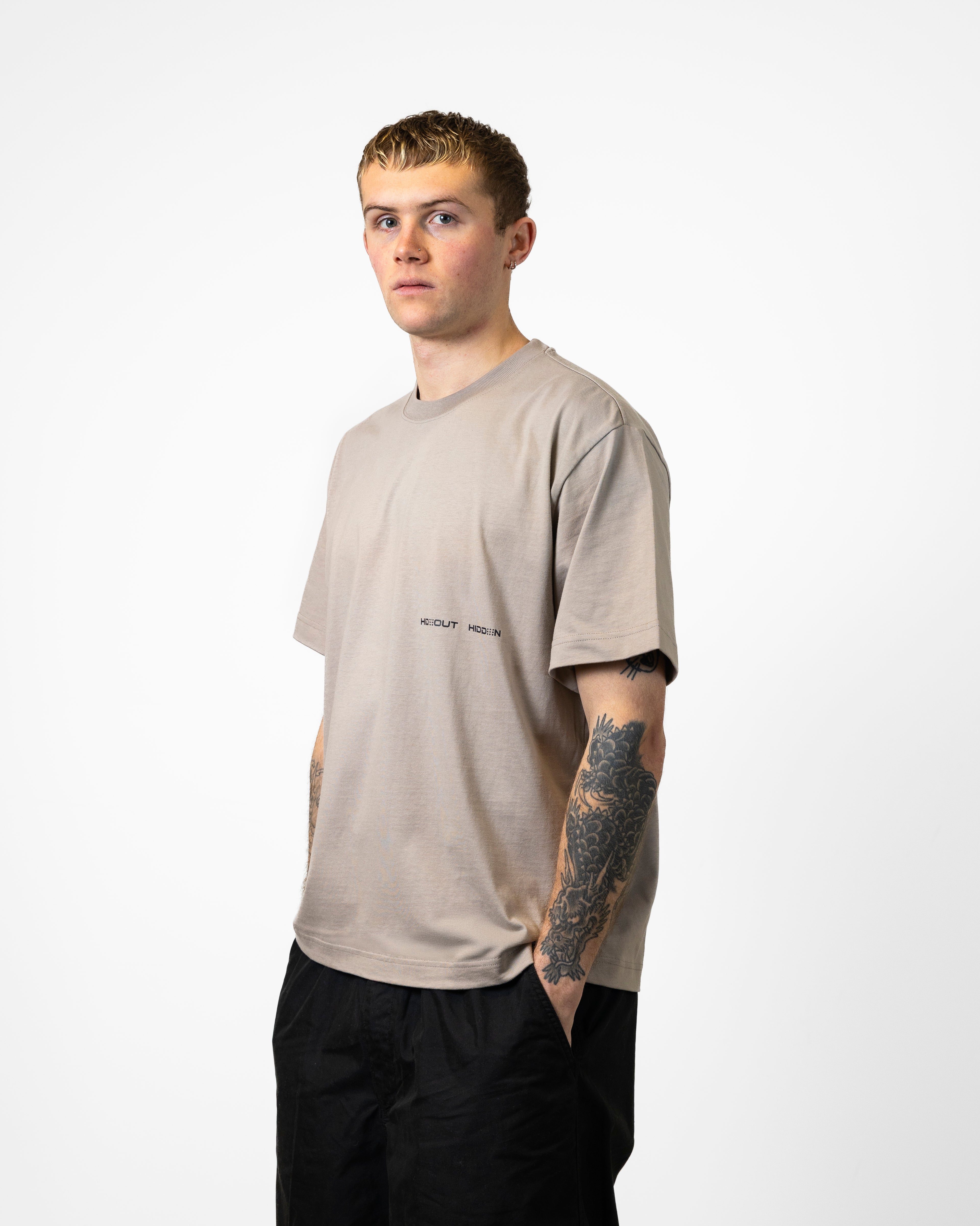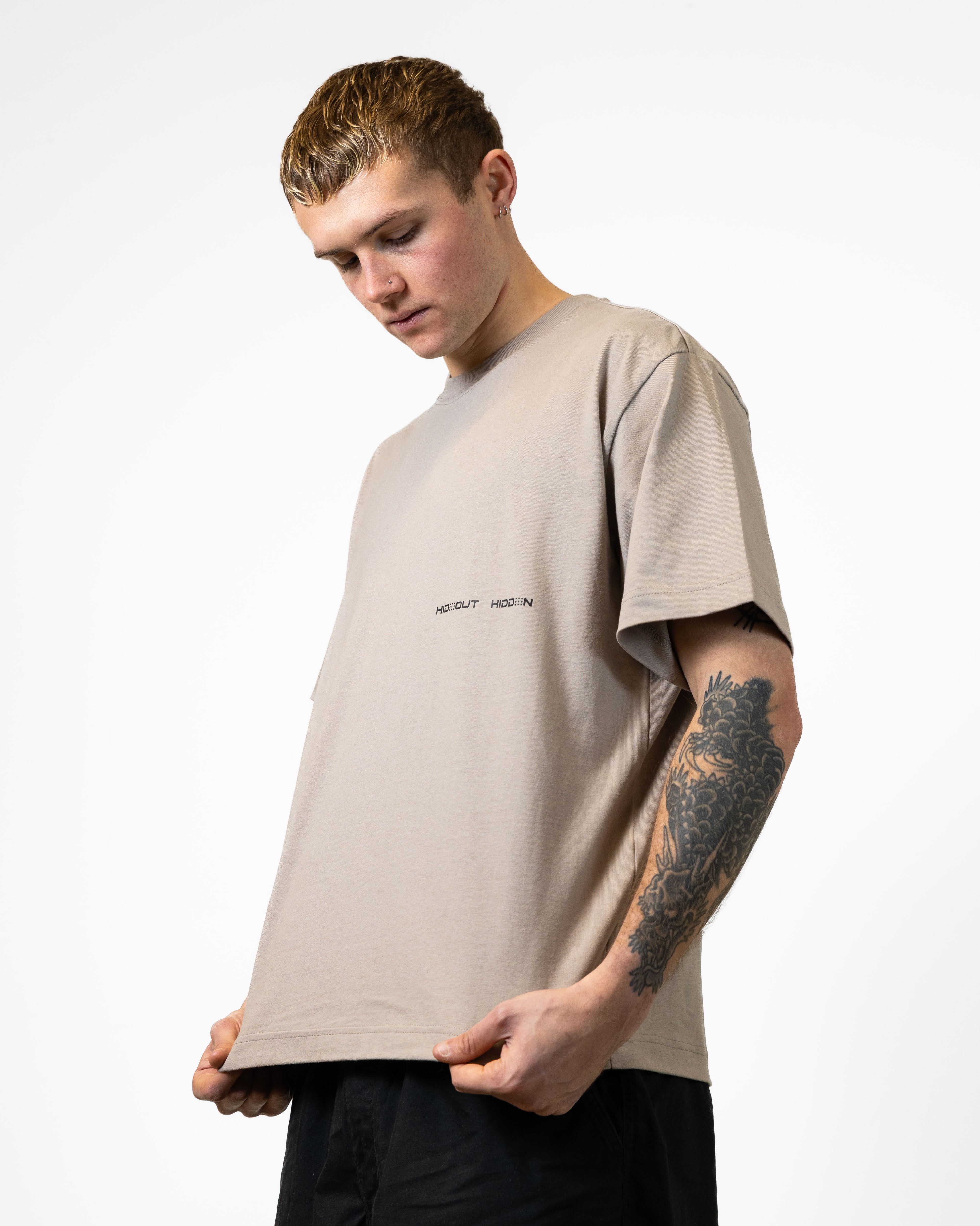 SINGER TEE -GREIGE/BLK- BOXY FIT