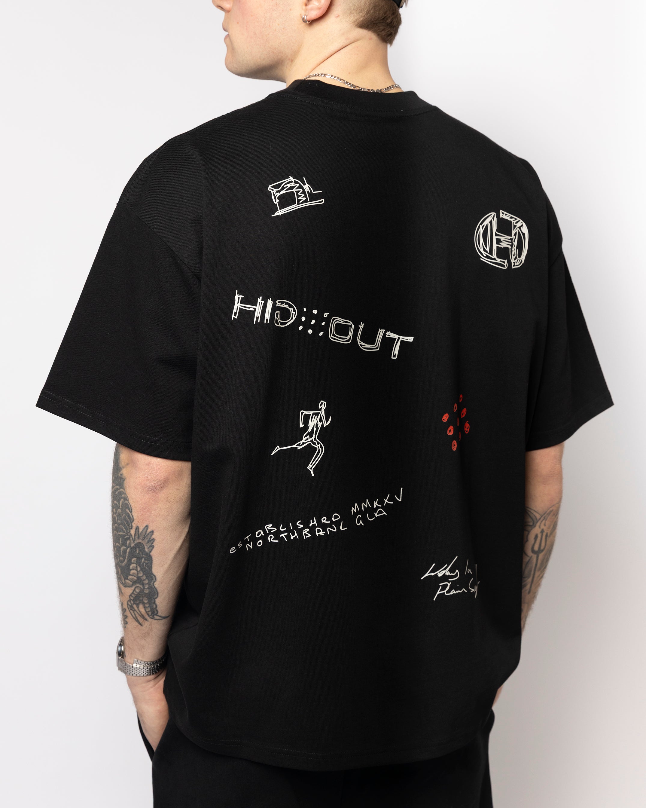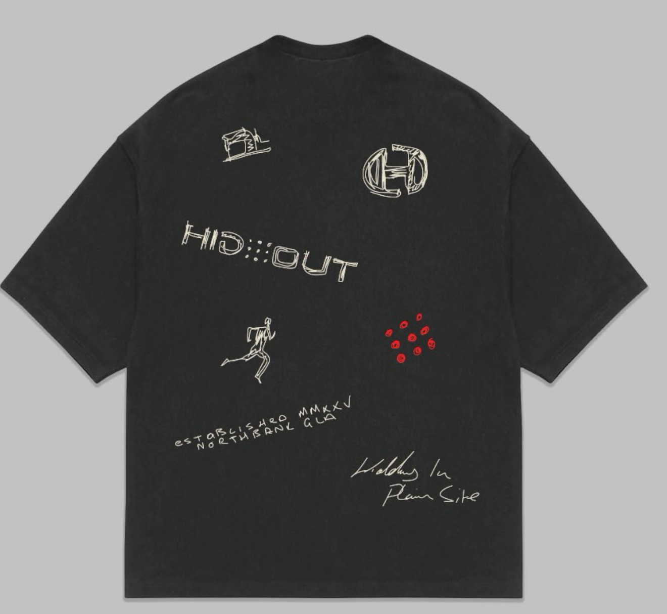 Oversized heavyweight T-shirt celebrating Hidden Hideout's first year. Featuring our iconic logo design rendered as a hand-sketched doodle—a nod to the creative journey that started it all. Crafted from premium fabric for everyday comfort and durability. This piece captures the spirit of our brand's early days, blending casual style with meaningful design. Perfect for those who appreciate authentic, thoughtfully designed apparel