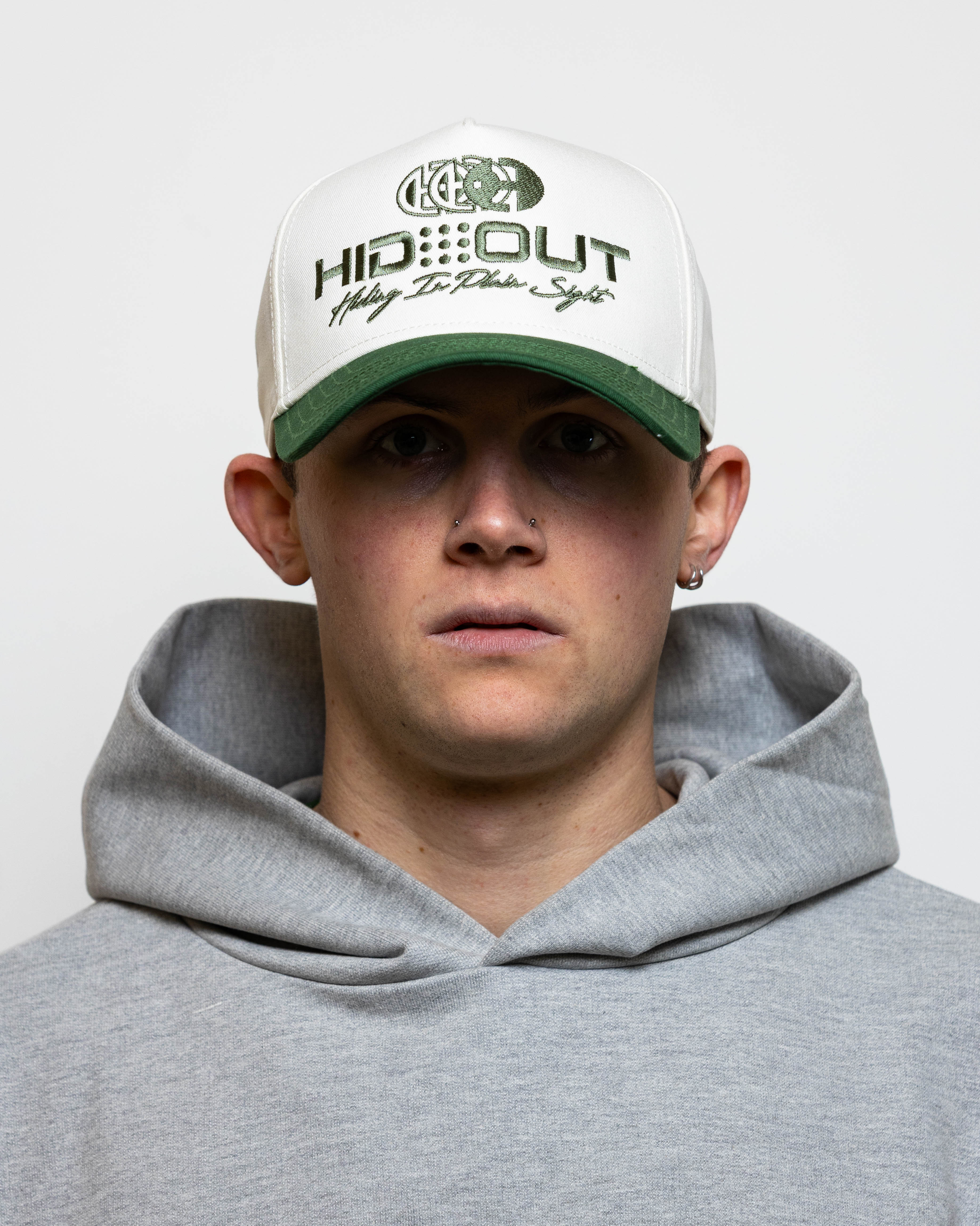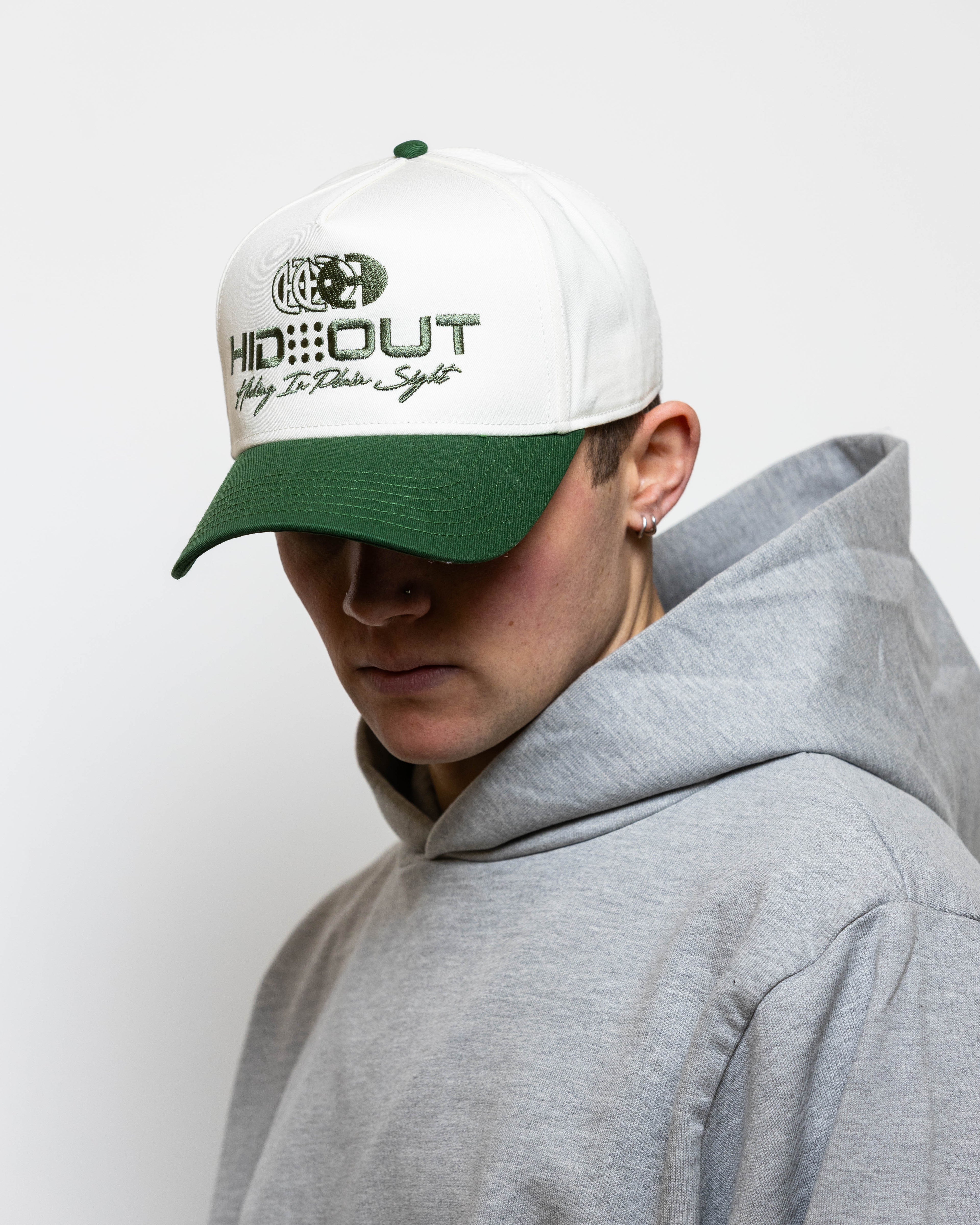 The SYLO CAP combines classic style with contemporary design. This five-panel cap features a striking two-tone colour scheme that makes a statement, while the structured front and curved peak provide a comfortable, flattering fit. Crafted from 100% cotton, it's breathable and perfect for everyday wear. The Hidden Hideout branding sits proudly on the front, and the matching brim ties the whole look together beautifully. Whether you're heading out for an adventure or just want to add a touch of personality to your outfit, this cap has you covered.
