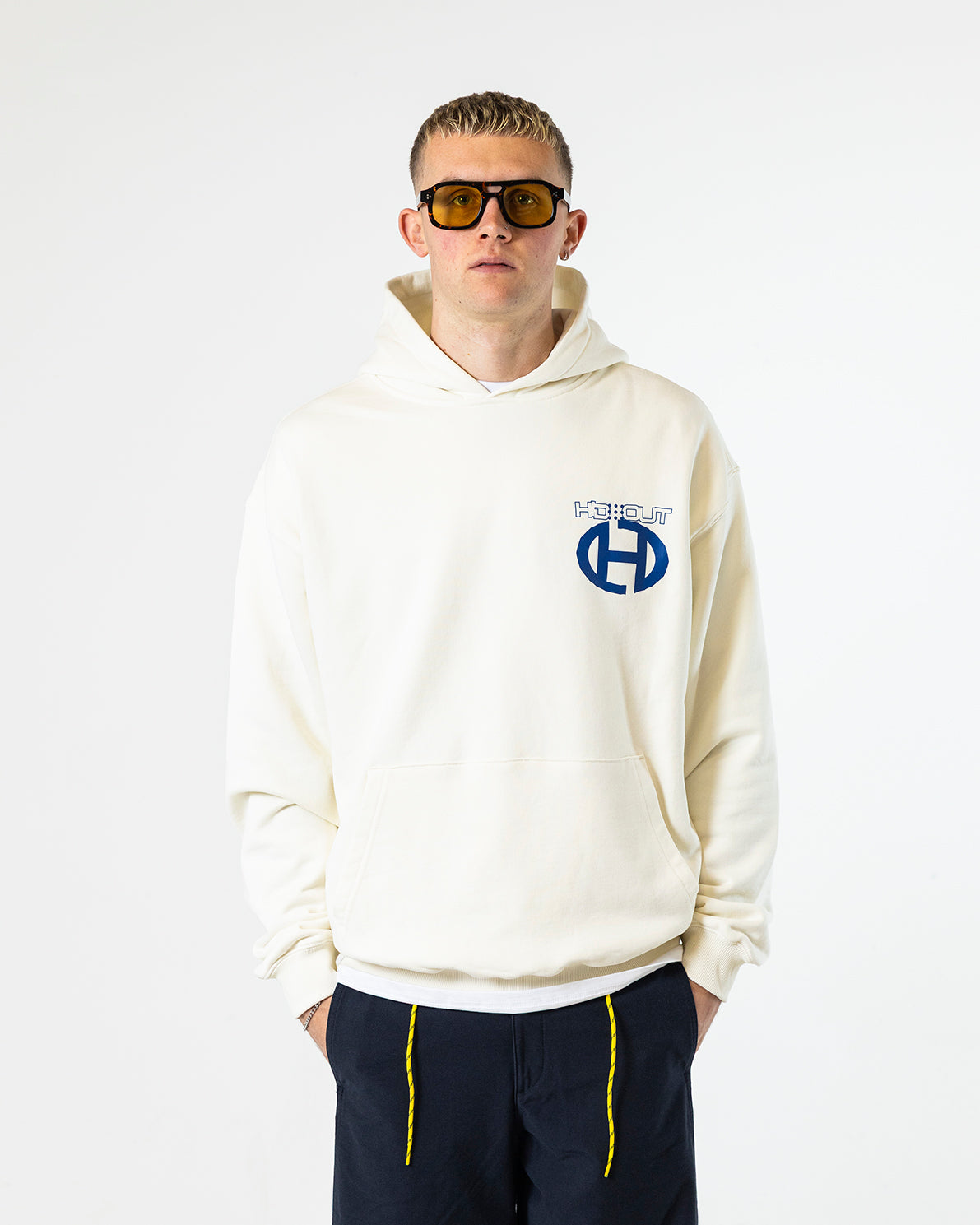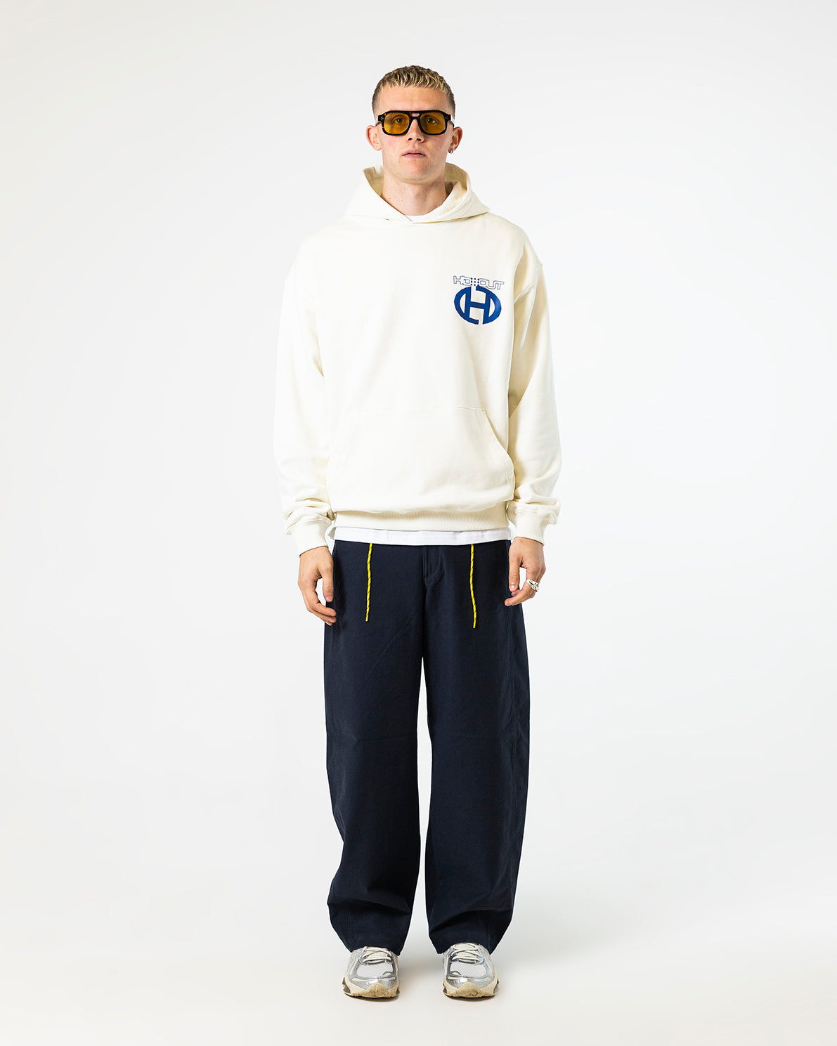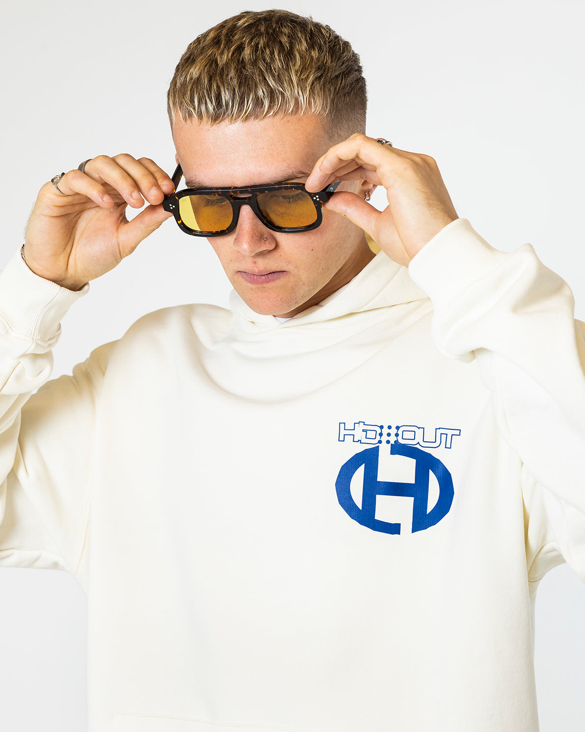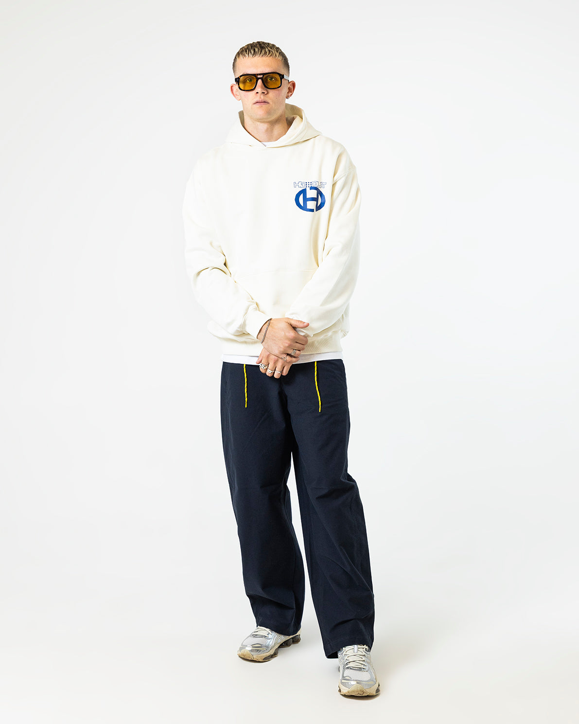 This relaxed fit hoody blends streetwear style with comfort, crafted from heavyweight 500gsm French Terry for durability and warmth. Its bold natural and pacific blue colours create a striking look, enhanced by a new logo featuring an offset wonky design that adds a unique edge. Perfect for effortless everyday wear while making a confident style statement.